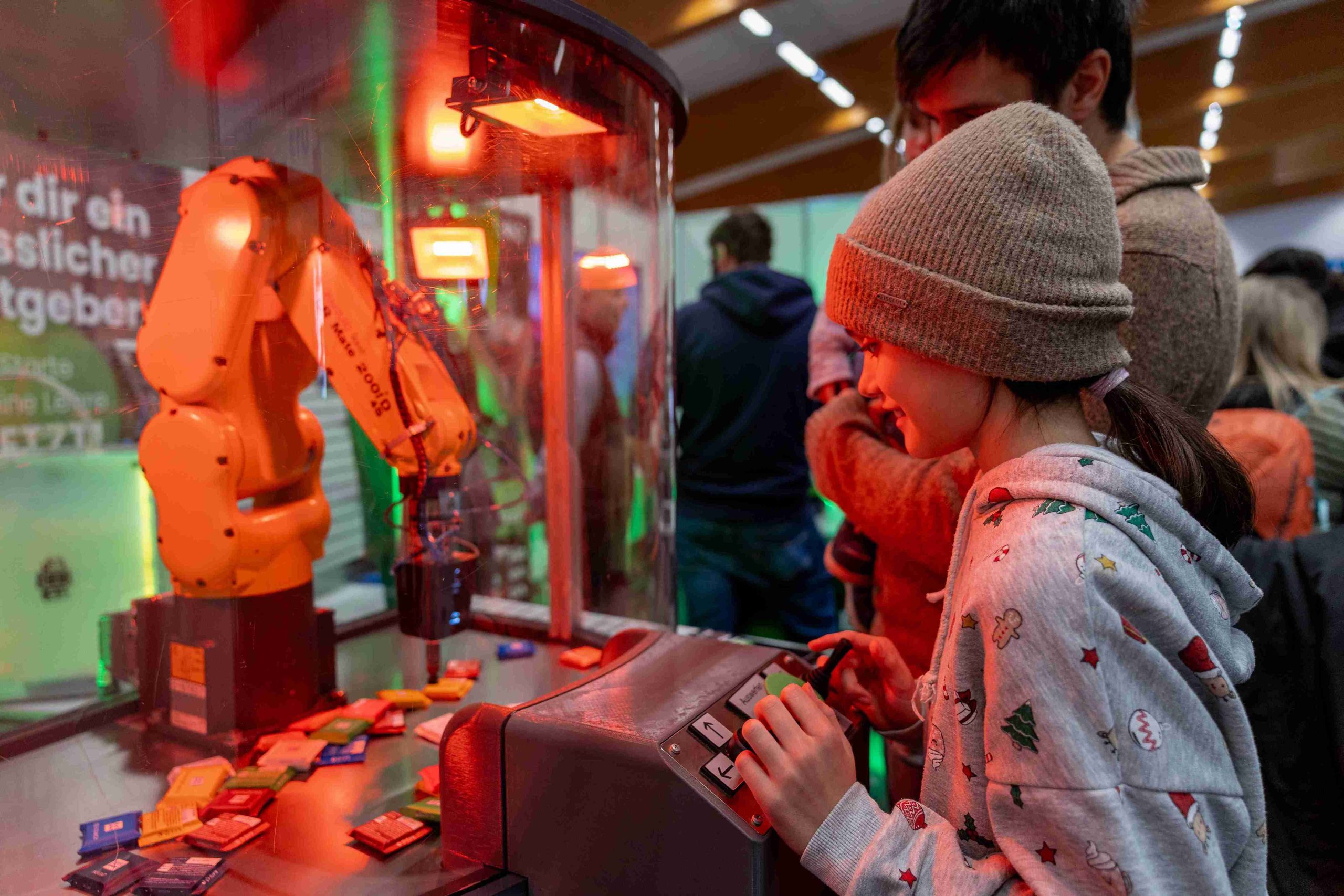 Die Visio Tirol präsentierte ein interaktives Konzept: Besucher:innen konnten beispielsweise Schweißsimulatoren, Roboter oder eine Veeh-Harfe ausprobieren.